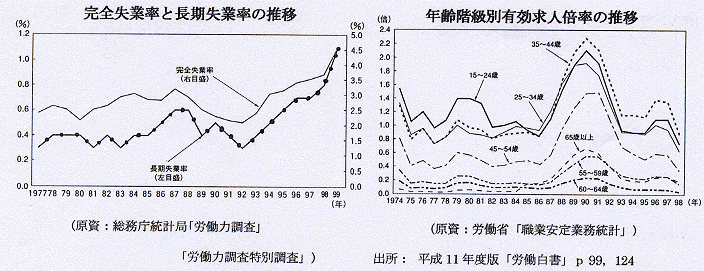 >>   はじめに  第1章-1  第1章-2  第2章  第3章  第4章  おわりに  文献:DATA >>続き:第1章 現状の認識 第3節 社会保障制度 社会保障制度とは、国家が、国民のすべてに対して、社会の責任において、その最低生活を保障する制度である。 日本国憲法は、第25条第1項において、「すべて国民は、健康で文化的な最低限度の生活を営む権利を有する」として、生存権を保障している。また、第2項において「国は、すべての生活部面について、社会福祉、社会保障及ぴ公衆衛生の向上及び増進に努めなければならない」として、社会保障についての国の責務を定めている。 日本の社会保障制度は、社会保険・公的扶助・社会福祉・公衆衛生の4分野からなっており、その申で、最も中核的な位置を占めるのは、社会保険制度である。社会保険制度には、医療保険・年金保険・雇用保険・労働者災害補償保険・介護保険の5部門があり、拠出者(メンバー)の不慮の事態に対して、拠出者全体でその負担を背負うという、メンバーシップ制をとっている。つまり、社会保険における給付は、拠出に対する反対給付なので、その性質上、排除原理を持つ。こうした、社会保険に加入する為の拠出条件を満たすことのできない人々、社会保険によって保護されない生活困窮者に対して、国家がその生存権を保障するため、必要な所得を扶助することを公的扶助といい、生活困窮者の生活保障とその自立を目的に、1946年に制定されたのが、生活保護法である(1950年に全面改訂され現在に至る)。公的扶助には生活・教育・住宅・医療・介護・出産・生業・葬祭の8種があり、財源は全額国庫負担である。 前節でみてきたように、日雇労働者から野宿者への「転落」過程において、大きな要因となるのは、社会保障の欠落であった。釜ヶ崎労働者が野宿労働者へと移行し、さらに野宿の長期化により労働能力を失っていく過程では、一般に、失業給付である「日雇労働求職者給付金」の給付期間終了、公的年金制度からの排除、さらに、公的扶助制度からの排除という形で、社会保障制度の(不備の)不利益を被っている。裏を返せば、これらが整備されていれば、たとえ不安定な労働市場が存在しても、現在のような野宿者急増の事態に直面することはなかったといえる。本節では、上記3分野の社会保障制度について、その問題点をとりあげる。 1 雇用保険制度 建設業目雇雇用保険制度は、一般の雇用保険制度に比べ、特殊なものとなっており、失業目の前2ヶ月間にわたり、計26目の就労日数を満たさなかった者は、雇用保険の対象から外されてしまい、失業給付が支給されない。さらに、26目以上の就労機会を得ることができた労働者に対しても、給付期間は13日間という極めて短いものである。 日本の雇用保険制度は、短期的失業対策の性格をもち、雇用保険法20条により、受給期間は1年以内に限られている。日雇雇用保険制度は、日々雇用という就労形態に規定されて、通常の雇用保険制度よりもさらに、短期的失業対策の側面を全面に押し出された形になっている。しかし、このような短期失業給付は、高齢労働者の構造的失業に対しては、何の効果も持っていない。彼らは高齢ゆえに、就労自体から排除されているのである、下のグラフが示すように、失業期間1年以上の者が労働力人口に占める割合(長期失業率)は、急速に増加しており、今後の高齢者人口の増加を考慮すると、雇用保険制度の体系それ自体を見直さねぱならないといえる。 ● グラフ:完全失業率と長期失業率の推移 / グラフ:年齢階級別有効求人倍率の推移 2 公的年金制度 今日の日本社会において、公的年金は、その寡少に関わらず、高齢者の経済生活を支える最大の収入源として捉えられている。しかしそれは、公的年金が「最低限度の生活」を保障することを意味しているのではない。日本の年金制度は、非常に大きな給付額の格差を内包しており、格差構造の底辺部分には「最低生活」を送ることのできない高齢者が大量に存在している(11)。99年の老齢基礎年金(国民年金)等平均年金月額は、4万9,000円であり、その額は、最低生活費基準とされる生活扶助費(65歳単身高齢者で大阪市80,410円)よりも低い。さらに、国民年金の保険料は、月額13,300円と高額である。 ● 表:公的年金制度の受給者数・平淘受給額等(99年3月末現在) 一方で、厚生年金受給者の平均月嶺は、18万6,OOO円である。しかし、厚生年金自体、その中に格差を抱えている。94年の研究によれば、女性受給者の3人に1人が、月額約2〜3万円、男性のほぼ4人に1人が、約3〜5万円の年金しか受給していない。こうした年金受給額格差は、公的年金制度が求める拠出期間の長さに依拠している。公的年金制度の受給資格を得るには、厚生年金で20年間、国民年金で25年間という、極めて長期にわたる拠出期間を満たさなければならない。つまり、長期の拠出期間(労働生涯)を、景気変動による解雇や失業・転職を経験せずに過ごせた